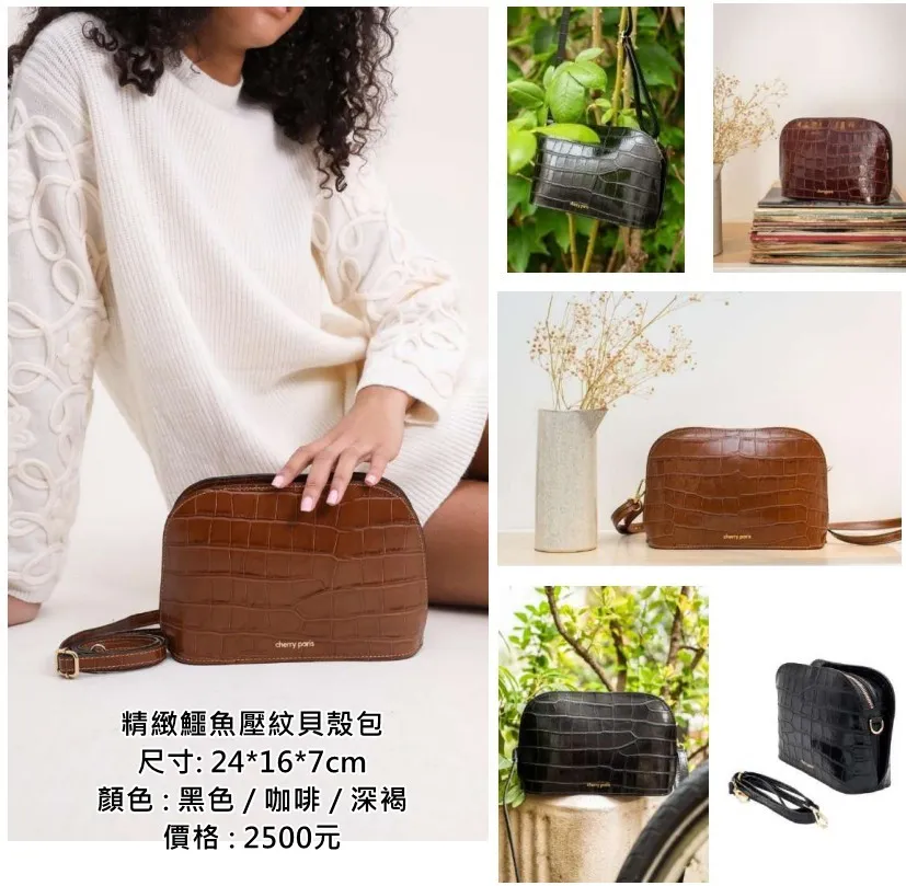 義大利真皮包款 - 精緻鱷魚壓紋貝殼包