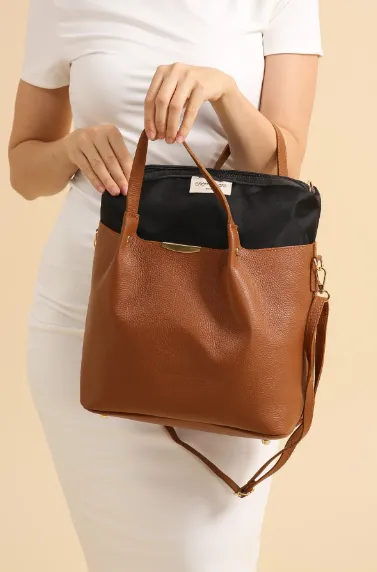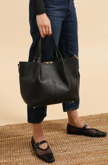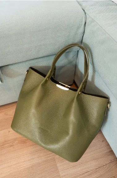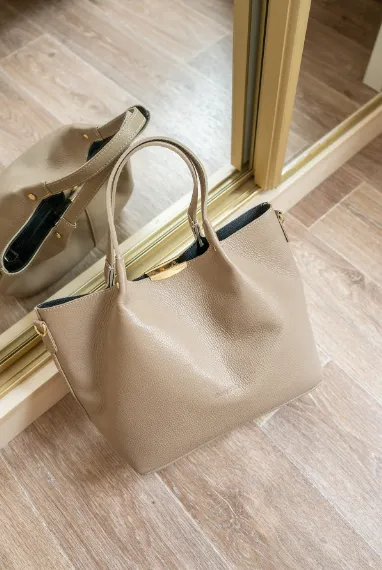 義大利真皮包款 - 時尚金扣抓皺托特包