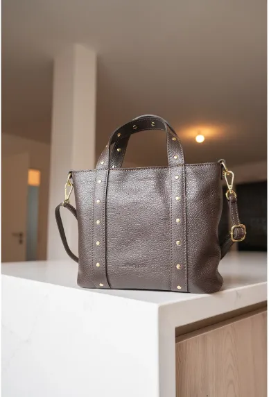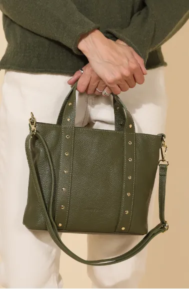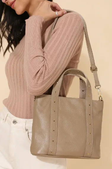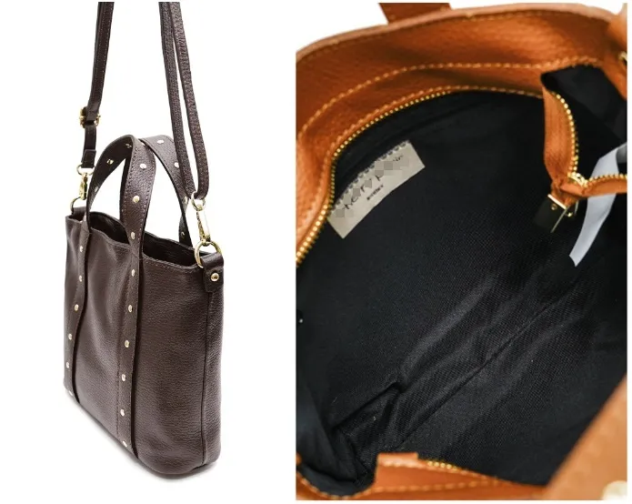 義大利真皮包 - 鉚釘方形小提包