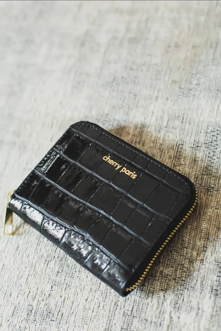 輕巧實用高質感的鱷魚印紋真皮拉鍊短夾, 可裝卡片零錢髮夾等小物, 如要裝鈔票需對折