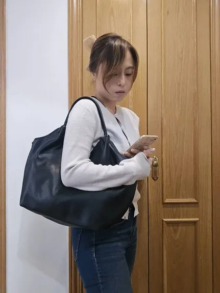 義大利真皮包-大款弧形肩背包 (有長背帶)