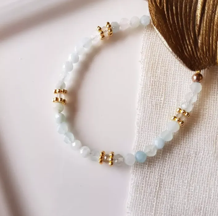 法國製天然礦石飾品-AGUAMARINA 淺藍系手環