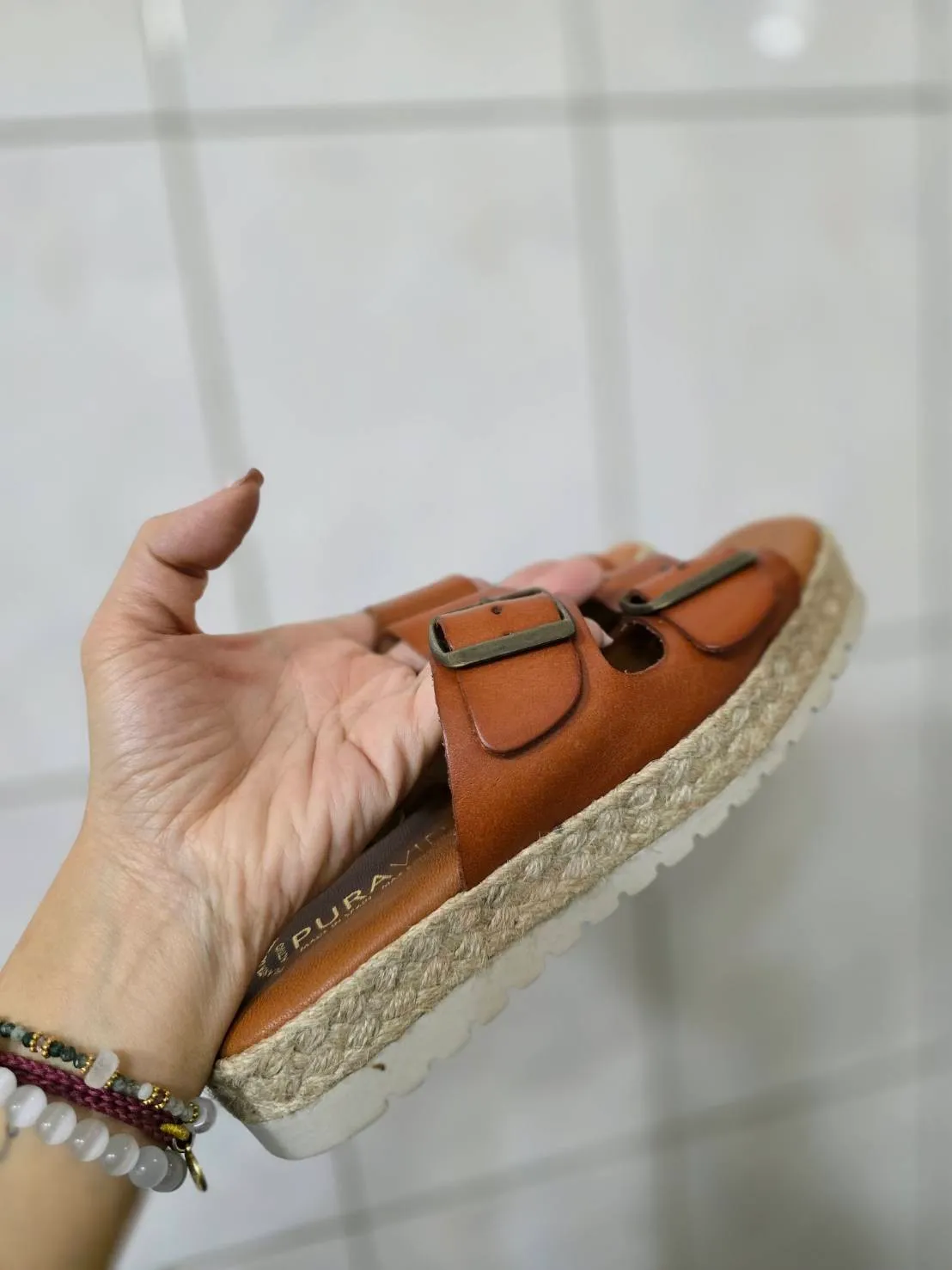 [現貨]西班牙製-厚底仿草編雙帶涼拖鞋 37