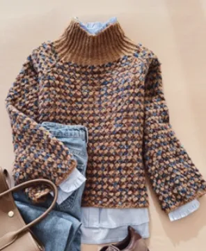 溫暖隨興的搭配風格, 適合內搭襯衫做出層次感的伸縮領口寬袖毛衣
