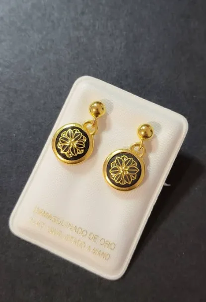 Damasquinado(大馬士革鑲嵌)是一種在黑漆底以24k黃金/18k黃金/純銀/白金等貴重金屬在上面鑲嵌製圖技術, 根據老師傅的描述, 越細的金屬絲線鑲嵌越不容易, 所以價格也會比片狀鑲嵌圖案來的高
