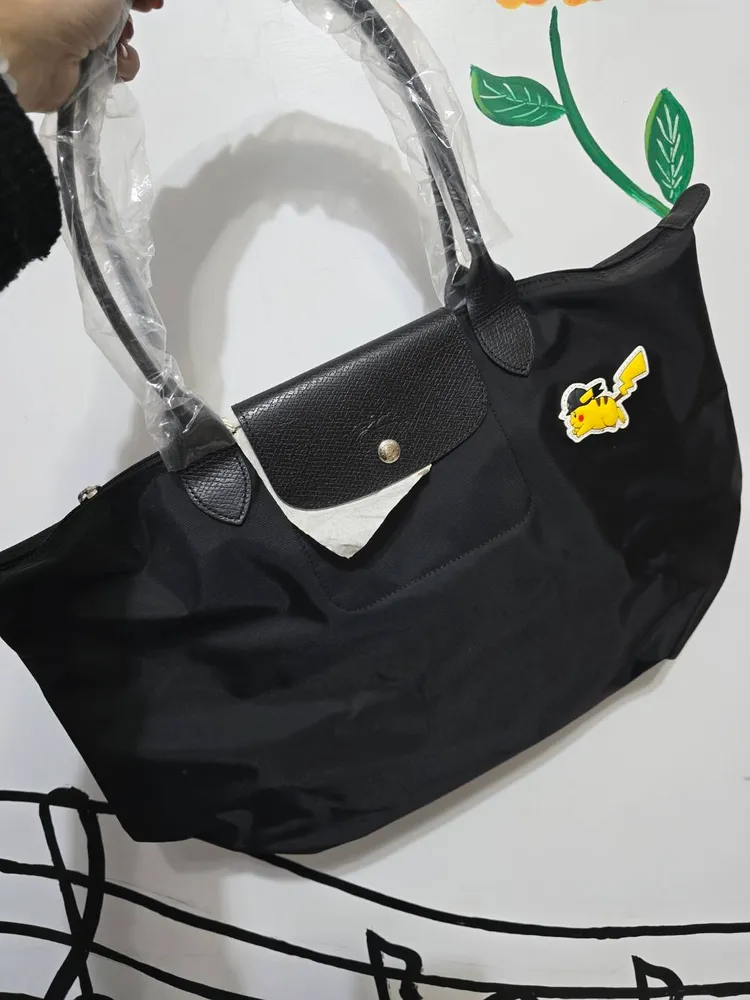 Longchamp X Pokemon 皮卡丘設計肩背水餃包,經典尼龍與牛皮革材質,美觀大方,可放10吋平板電腦和A4文件,內有2個小內袋